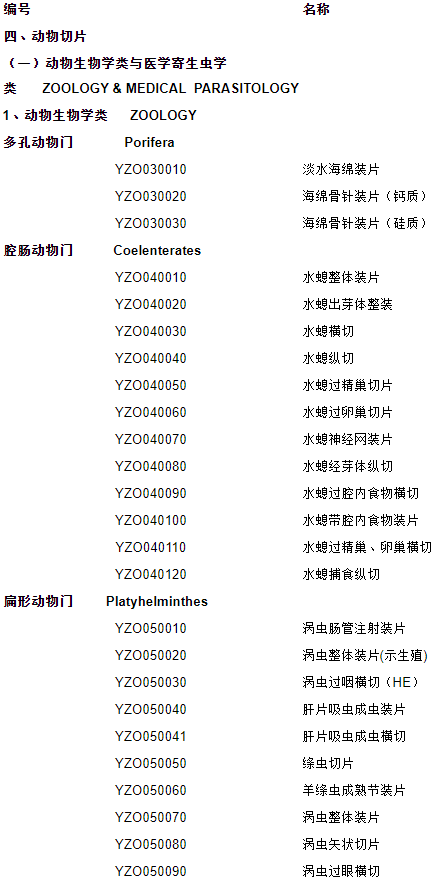 生物玻片 植物切片 中草藥切片 植物病理裝片 動物切片 微生物切片 組織胚胎切片 人體病理切片 寄生蟲切片